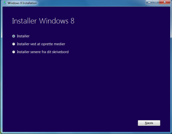 Windows 8 sørger selv for at installere og fjerne din nuværende version af styresystemet.
