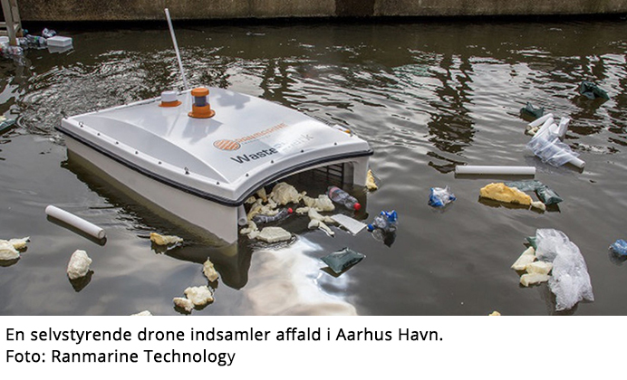 En af de nyeste og mest avancerede metoder til dette er i øjeblikket ved at blive testet i Aarhus Havn. Her samarbejder en drone i luften med en drone i vandet om at identificere og opsamle både plastik og olie i vandet og aflevere det i en dockingstation. På sigt er det meningen, at flere droner i luften og til vands helt autonomt skal kunne samarbejde om at holde havvandet rent, så plastik ikke ender i fiskene, og olien ikke truer andet liv til havs.