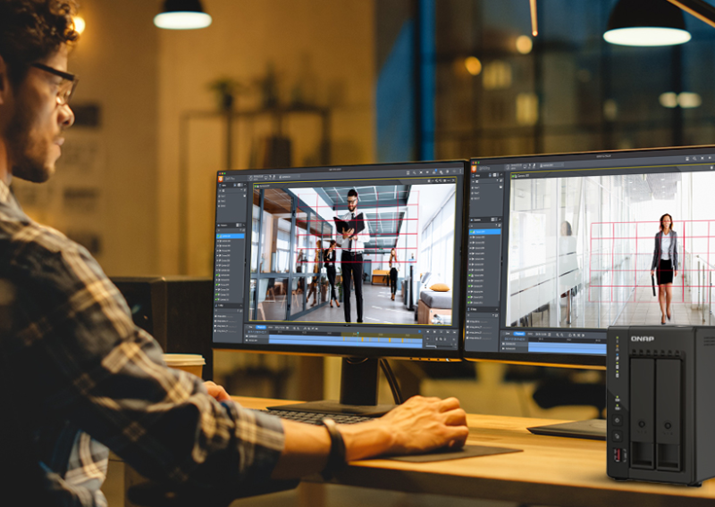 De to indbyggede 2.5GbE-porte kan forbindes til QNAP 2.5GbE-switche for at levere en mere flydende jævn streamingoplevelse for en overvågnings-værtsserver, der modtager flere videokilder over en længere periode. De to HDMI-udgange gør det muligt at se multi-kanal videoer på to skærme. QVR Pro Client-software kan installeres på Windows- og macOS-enheder eller mobilapps for at tage fuld kontrol over overvågede områder.