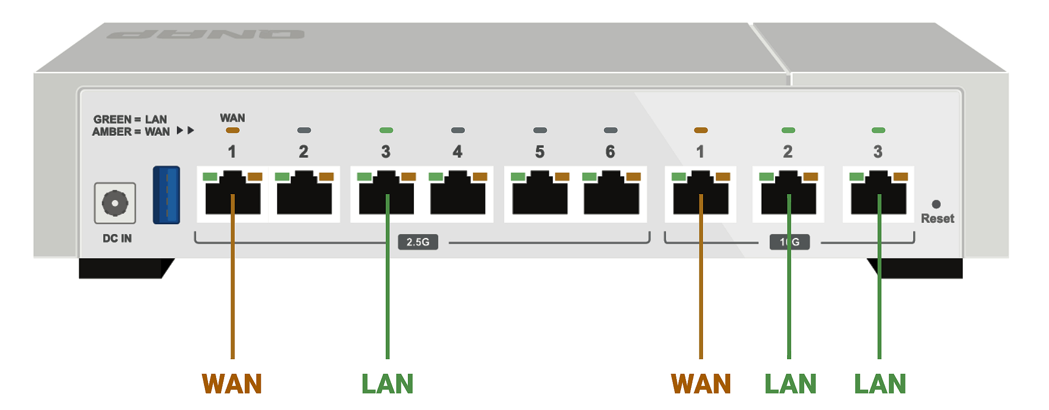 Som en næstegenerations router giver hver port på QHora-322 dig fleksibel højhastigheds LAN/WAN-implementering. Denne router har tre 10GbE-porte (kompatible med 10G/5G/2.5G/1G/100M) og seks 2.5GbE-porte (kompatible med 2.5G/1G/100M) for ultimativ højhastigheds kabelbaseret netværksydelse.