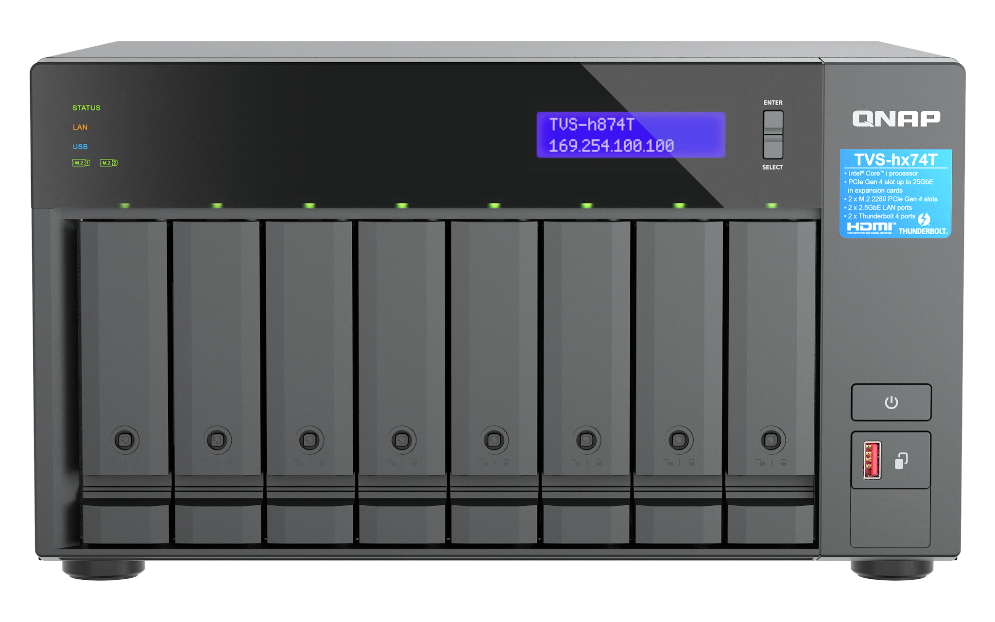 Den helt nye Thunderbolt 4 NAS er en fantastisk støtte for dine kreative talenter. Med en kraftfuld Intel Core i9 16-core / i7 12-core processor gør QNAP TVS-h874T din produktion af 4K-videoprojekter til en problemfri, simultan oplevelse for alle i dit team.