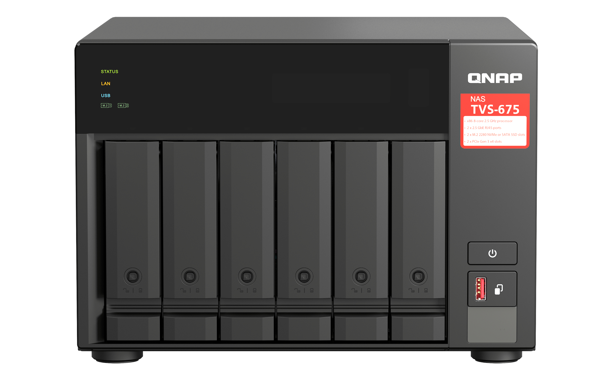 QNAPs TVS-675 baseret på en 8-core Zhaoxin KaiXian KX-U6580 processor med x86-arkitektur, giver virksomheder en moderne 2.5GbE NAS-løsning til at håndtere hverdagsopgaver som sikkerhedskopiering/gendannelse af filer og til at forbedre teamsamarbejdet med højere produktivitet.