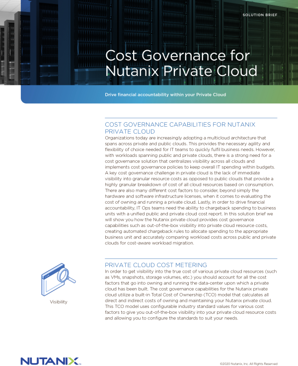 Nutanix private cloud indeholder en omfattende Total Cost of Ownership (TCO)-model, som kalkulerer omkostningsniveauet, så du kan se præcis, hvilke ressourcer du betaler for – og i hvilket omfang – på tværs af både public clouds og Nutanix private cloud.