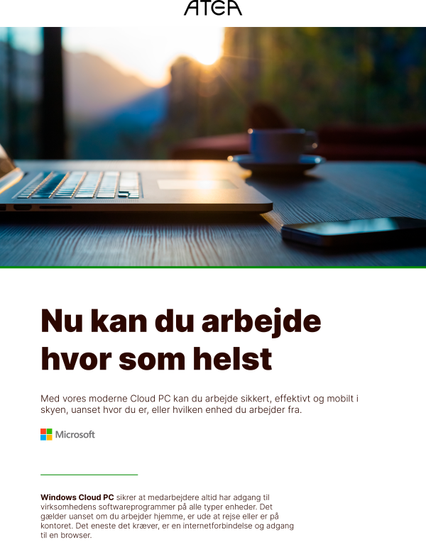 Læs her, hvordan du kommer i gang med Windows Cloud PC og om, hvordan du sparer tid og omkostninger, optimerer sikkerheden, effektivt fjerner teknologiske bump på vejen – og endda minimerer virksomhedens CO2-aftryk.